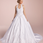 Le dos travaillé ajoute une dimension élégante et féminine, mettant en valeur la silhouette de façon harmonieuse. Chaque détail est pensé pour assurer confort et beauté, permettant à la mariée de profiter pleinement de sa journée. La légèreté des tissus offre une liberté de mouvement idéale pour danser et célébrer sans contrainte.