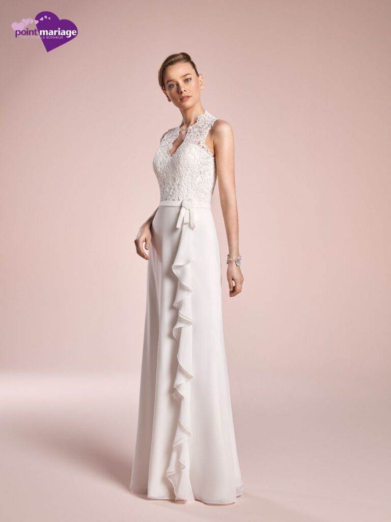 Cette robe de mariée Florence Point Mariage combine élégance et confort. Les finitions soignées et le tissu fluide créent un tombé parfait. De plus, elle reste légère et agréable à porter, permettant à chaque mariée de profiter pleinement de sa journée.