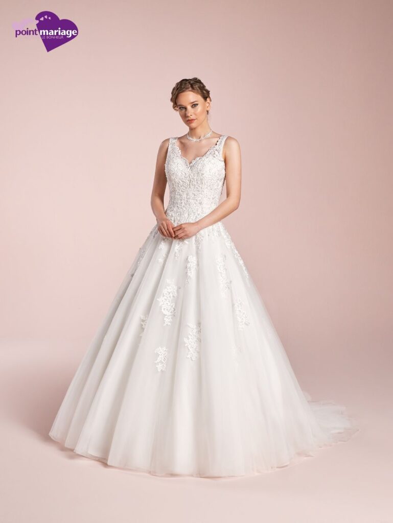Proposée neuve à prix doux chez Stock Mariage, la robe de mariée Melbourne Point mariage permet de vivre un rêve de princesse sans dépasser son budget. Une création délicate, pensée pour sublimer chaque instant du grand jour.